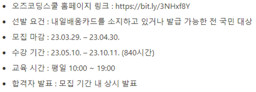 - 추가로, 이번 오즈단 대외활동을 진행하는 넥스트러너스 기업의 [오즈코딩스쿨]을 짧게 소개해드리고 글을 마치고자 합니다.