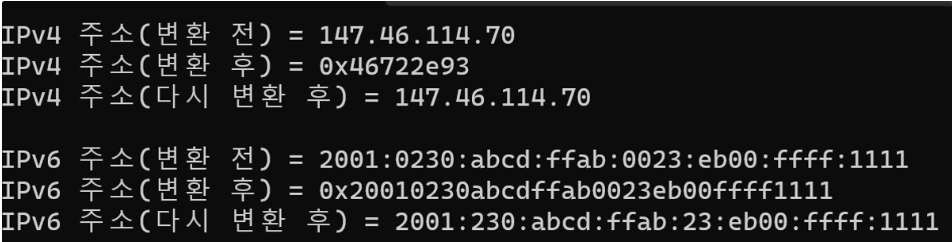 printf("IPv6 주소(변환 후) = 0x");