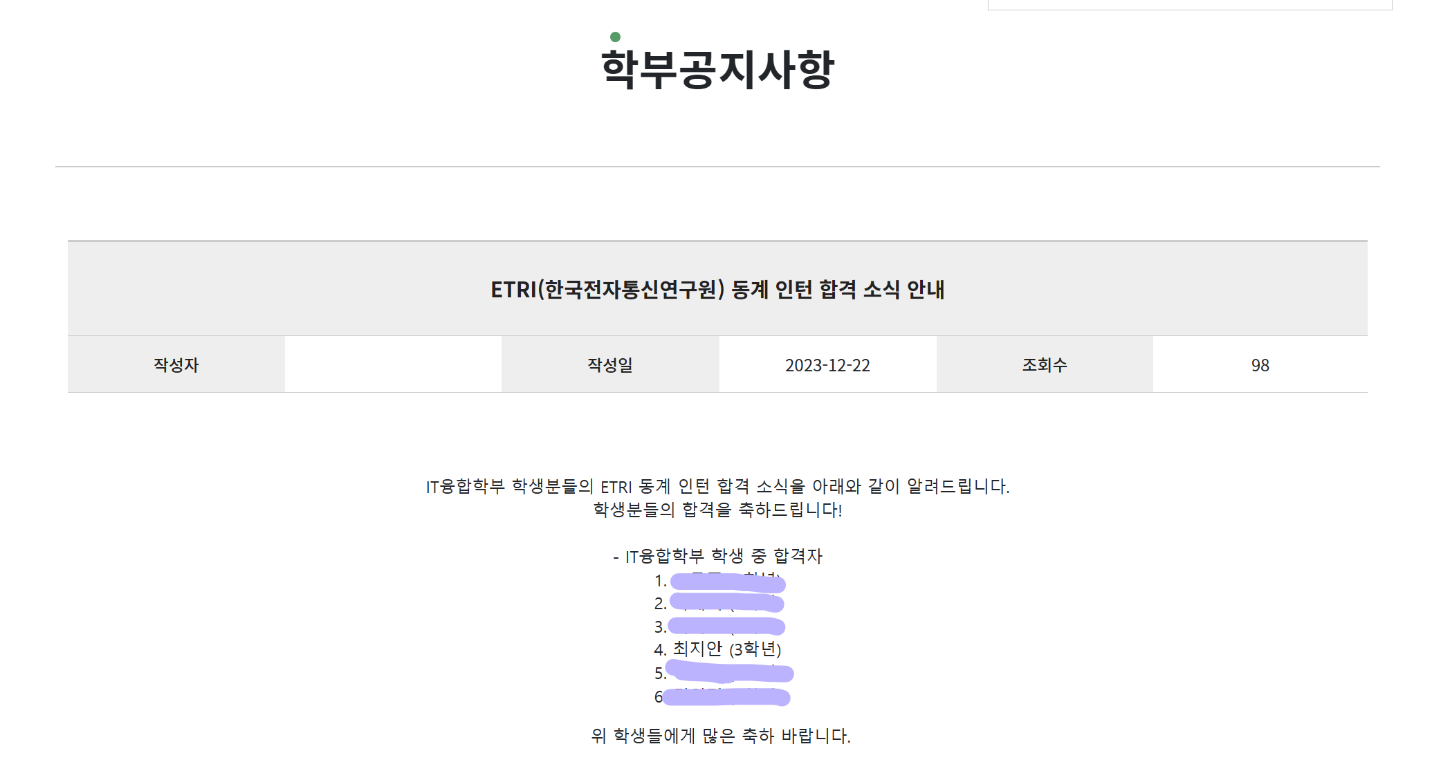 +그리고 우리 학과 공지사항에 내 이름도 올라왔다!!
