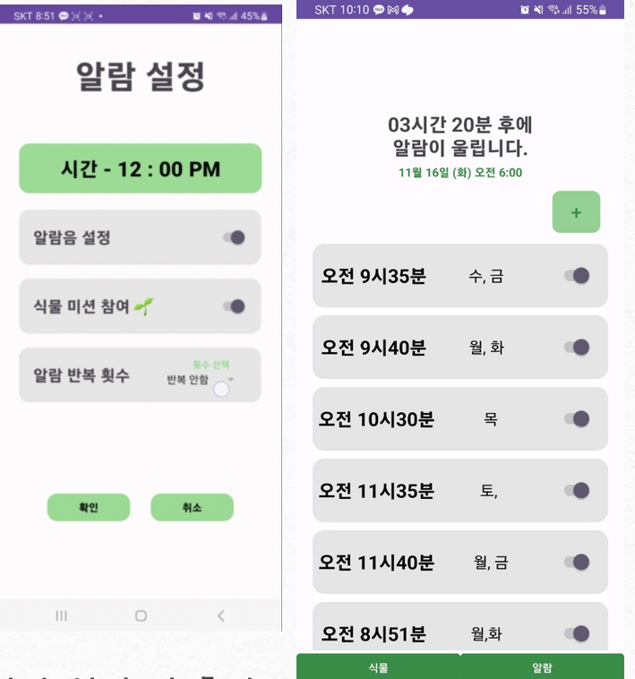 - 모바일 텀 프로젝트 : 프로랄람 | 식물 미션 및 알람 앱이며 알람을 깨려면 지뢰 찾기를 해야 함 (총 3명)