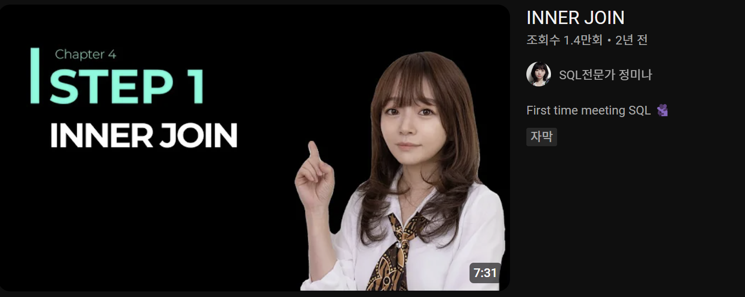 - join 등의 헷갈리는 부분을 빨리 복습하기 위해 [ SQL전문가 정미나 ] 님의 강의를 참고했다.
