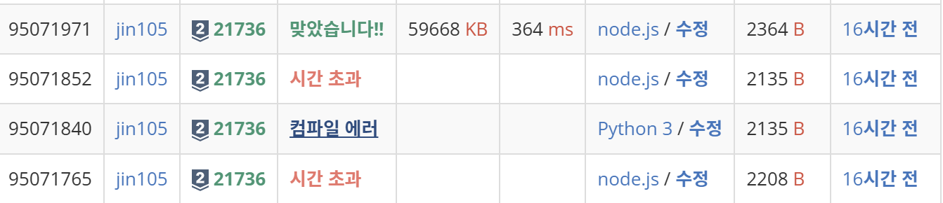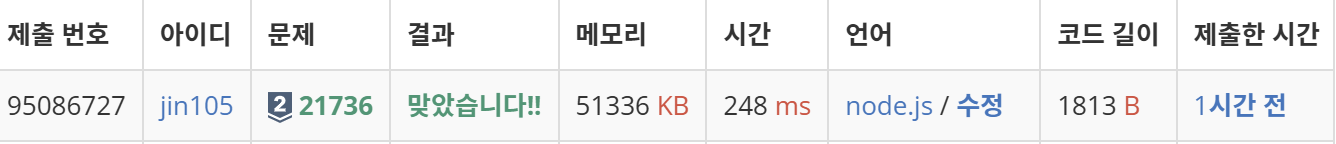 - 그래서 현재의 코드와 같이 큐의 첫 요소를 shift 하지 않고, index로 큐에 값을 확인하는 방식으로 변경하여 시간초과를 해결했다.