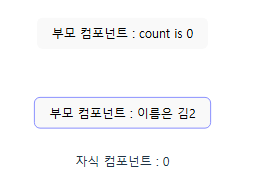 하지만, 만약 두번째 사진과 같이 부모 컴포넌트의 이름 변경 버튼을 눌러서, name을 '김1' -> '김2'으로 변경해 보겠습니다.